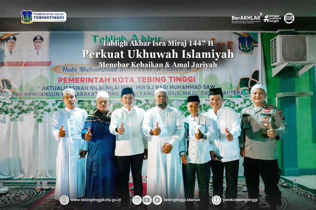 Tebing Tinggi: Wali Kota Tebing Tinggi, H. Iman Irdian Saragih, mengajak seluruh lapisan masyarakat untuk terus menjaga kondusivitas serta mempererat tali ukhuwah Islamiyah. Pesan ini disampaikannya saat menghadiri Tabligh Akbar Peringatan Isra Miraj Nabi Muhammad SAW 1447 Hijriah yang digelar Pemerintah Kota (Pemko) Tebing Tinggi di Masjid Al Jihad, Jalan Setia Budi, Kelurahan Brohol, Jumat malam (30/01/2026).